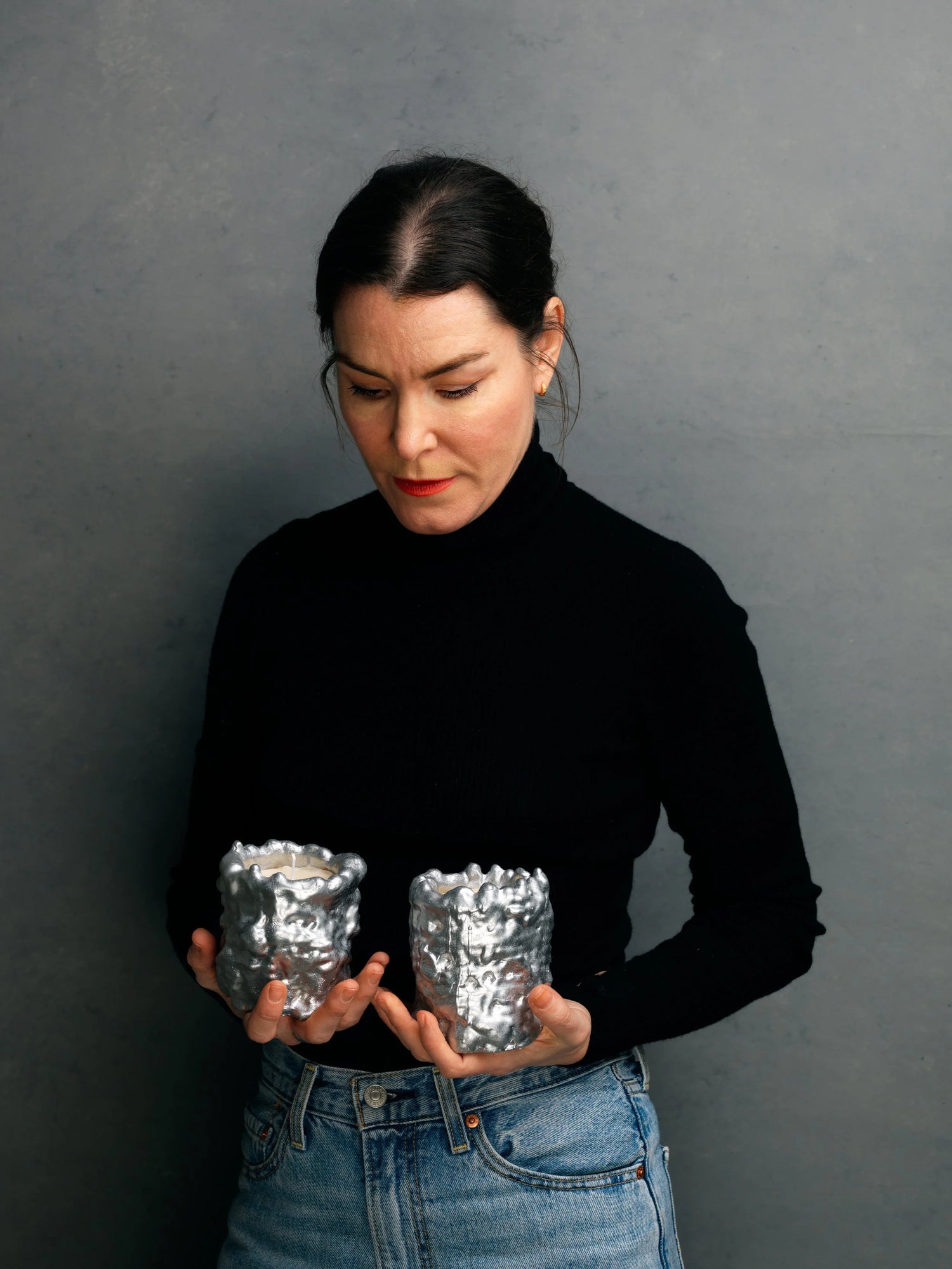 The artwork is made from 100% recycled candle wax from restaurants around Malmö, Sweden. By hand-dipping like in traditional candle making the designer creates new objects. It’s a slow process - warm wax is heavy and deform the shapes. The wax is poured into cast aluminium jars made with the Cire perdue-method (Lost wax) from the dipped wax originals, giving each object a unique expression from the almost organic growing wax surface. In this circular process, aluminium becomes a permanent memory of something fleeting.