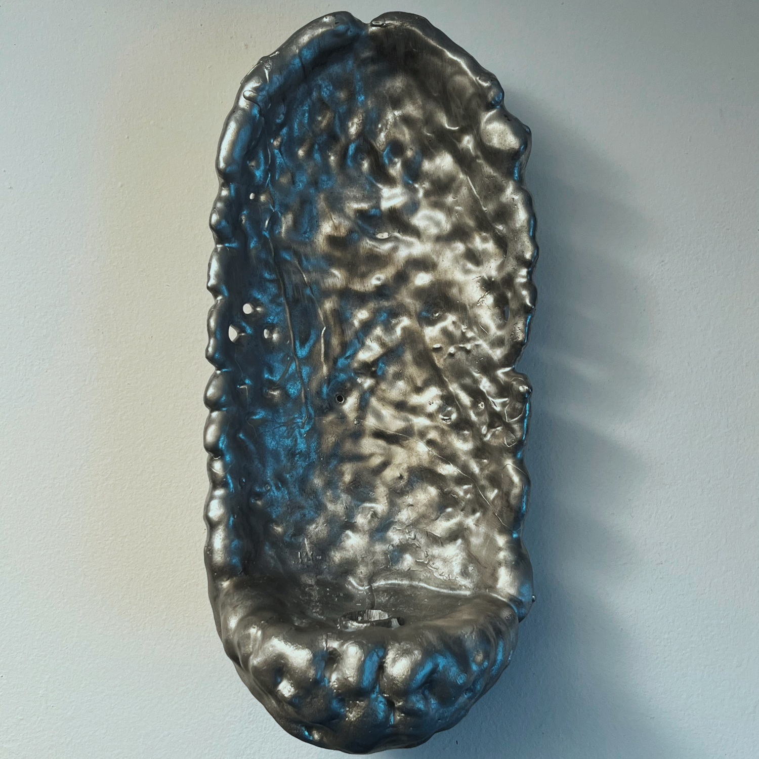 The artwork is made from 100% recycled candle wax from restaurants around Malmö, Sweden. By hand-dipping like in traditional candle making the designer creates new objects. It’s a slow process - warm wax is heavy and deform the shapes. The wax is poured into cast aluminium jars made with the Cire perdue-method (Lost wax) from the dipped wax originals, giving each object a unique expression from the almost organic growing wax surface. In this circular process, aluminium becomes a permanent memory of something fleeting.